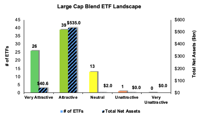 Investors seeking exposure to the Large Cap Blend style should buy one of the Attractive-or-better rated ETFs or mutual funds from Figures 1 and 2.
