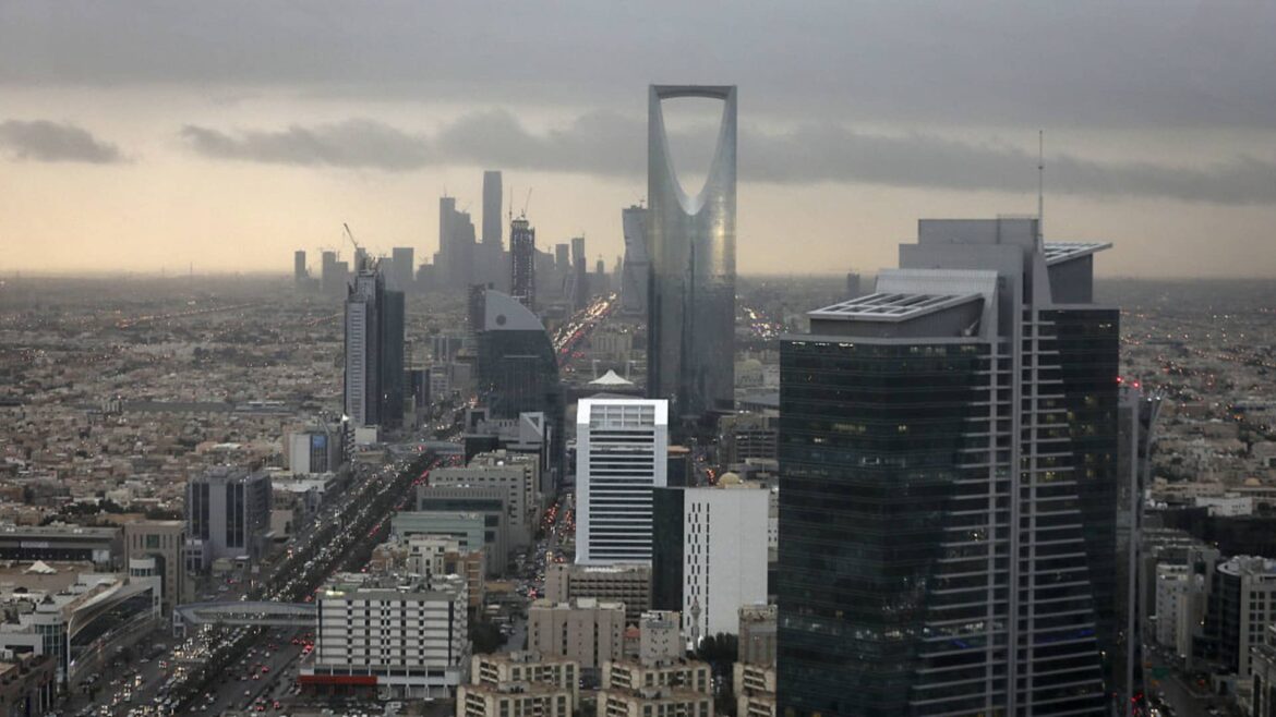 The Kingdom Tower (center) stands on the skyline above the King Fahd highway in Riyadh, Saudi Arabia.