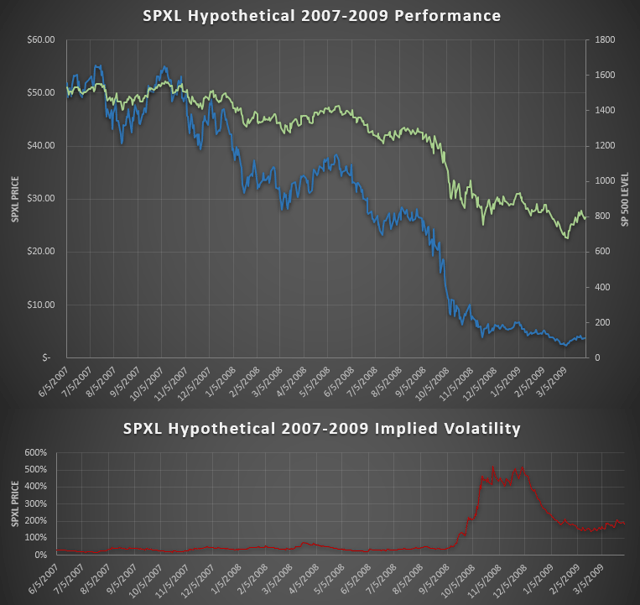 The current price of SPXL is $53.3, so let’s see where that price would likely go if another GFC occurred.