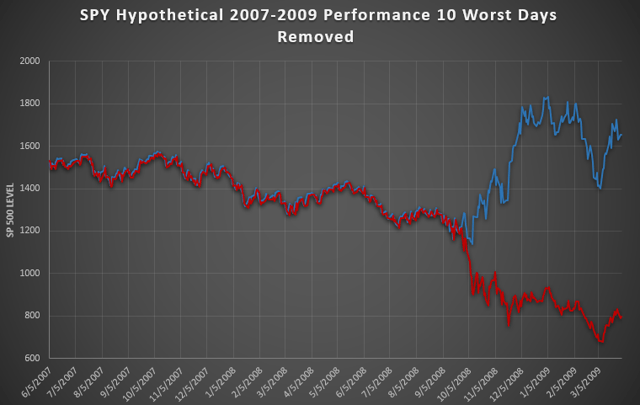 To illustrate, let’s imagine we removed the worst 10 days from the 2008 recession: