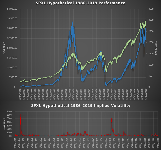 Moving on, what would happen if you bought a hypothetical SPXL share in 1986 and held it to today? Let’s see.